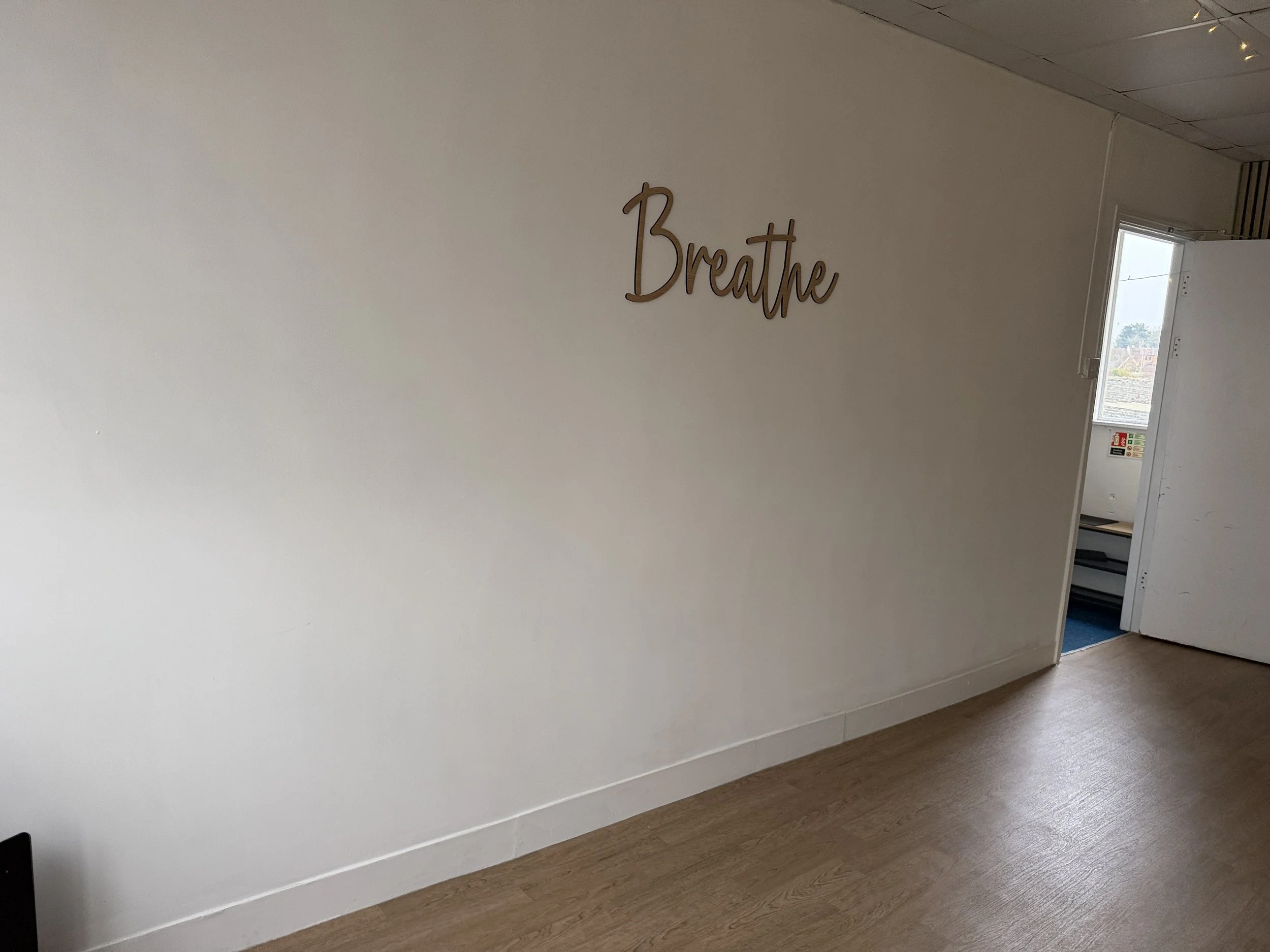 “Breathe” wall feature – ideal for wellness branding